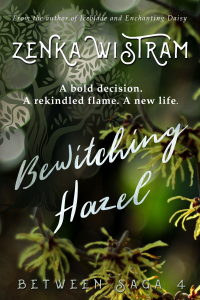 The heroines are named with floral themes and, unsurprisingly, in ‘Bewitching Hazel’ the leading character’s name is Hazel. Given the title, the plant on the cover had to be witchhazel. Like for the previous books, I chose an image that included some light flares, to imply a little bit of magic and mystery. The added stylized tree shape mixes up the textures a little, and reminds of ancient rock carvings.