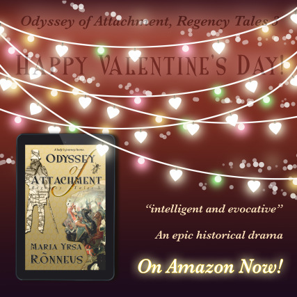 Anyway. Odyssey of Attachment will be available on Amazon some time in the next few days! I had hoped to publish Orbits of Attraction, the 5th part of Regency Tales, as it is more or less finished. I found myself being stressed by my self-imposed deadline however, so to allow time for a thorough edit, its publication will be somewhat delayed.