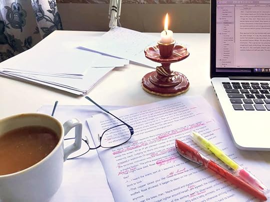 It’s been a strange week, Dear Reader. Family matters have over-shadowed fictitious drama, but I am pleased to report that I’m today returned to fantasy-land, snugly tucked into my studio, heavily equipped with candles, rose hip soup, and red pens.