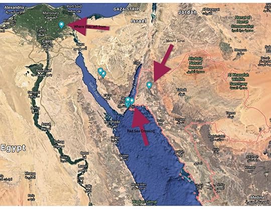 After our travelers cross the Red Sea, they find themselves in what is the northwest corner of modern day Saudi Arabia. They walk through desert and wadi and eventually find themselves in the mountain range not far from the crossing.