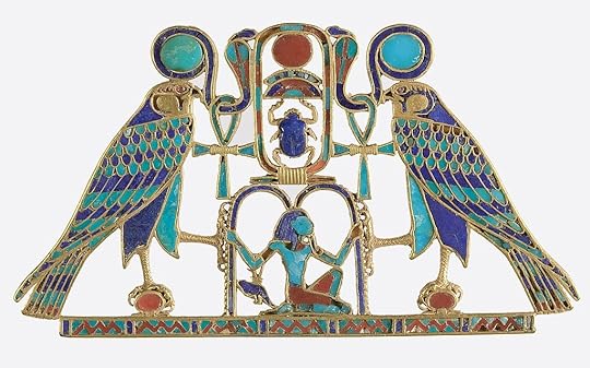 , circa 1887 –1878 B.C., Middle Kingdom, 12th Dynasty. Gold, carnelian, lapis lazuli, turquoise, garnet (pectoral) Gold, carnelian, lapis lazuli, turquoise, green feldspar (necklace). Metropolitan Museum of Art.