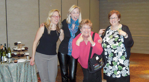 EB: I can do one better and share this photo of you, Sophia Nash, Cathy Maxwell and moi goofing off at RT after copious amounts of cupcakes and whatever was in those bottles.