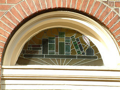 Loved this transom over one of the houses--who wouldn't love it--Books and a pen!