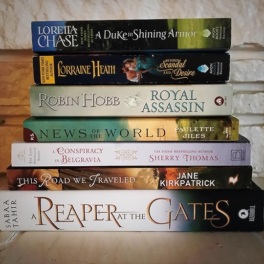Next up, some romance reading. Lorraine Heath, Laura Lee Ghurke’s new book, Governess Gone Rogue, and a Loretta Chase. After all the fantasy wars and battles and magical things, I need a little romance.