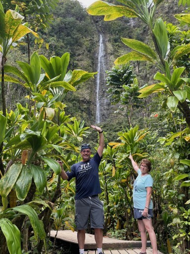 S’mores Master ClassOf course, 2021 was about more than just caregiving. In April, with Janet’s sister Cathy helping us on the home front, we spent an incredible month in Maui! Steve was asked to preach for a congregation there, and we got to snorkel with sea turtles, see waterfalls from a helicopter, hike a dozen trails, whale watch on a dinner cruise, nap on some of the world’s finest beaches, and party at a luau. Also, while traveling the Road to Hana, Tarzan Steve swung from a vine at a watering hole and was rewarded with 11 staples in his head.