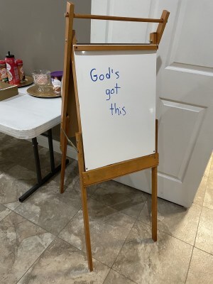 The young girl’s easel is among the first things seen by church members and relief workers upon entering the church’s Fellowship Hall. It contains a message of hope for all who enter: “God’s got this.” For those who know the backstory, the easel represents something more. It reminds us of a little girl who gave up her only possession. She gave us her all.