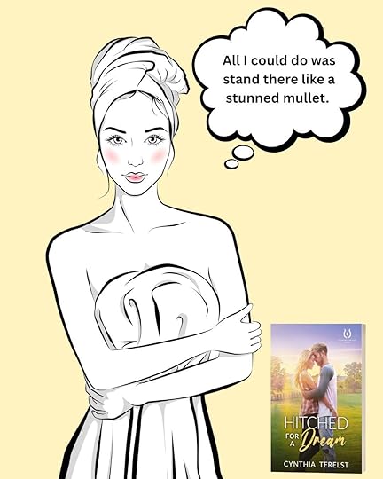 He came towards me. His gaze dropped to my chest, then lingered on my legs and his steps faltered. My thoughts faltered. Heat sparked under my skin before my brain caught up. He wasn’t supposed to be here. He whipped his eyes back up to mine. All I could do was stand there like a stunned mullet.