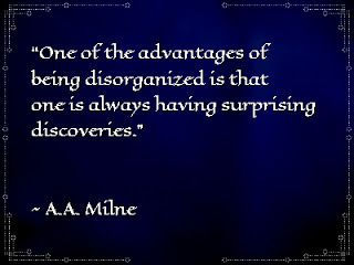 This one, for example. Because if you can get past the personal frustration of being disorganized, which can frequently lead you to think you're not only having a very bad day, but you're destined to always have bad days because you just can't get it together, you might just realize that being disorganized can lead to having surprising discoveries ...