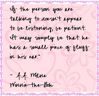 Of course, any time I delve into the mind of A.A. Milne, I'm fascinated and charmed and I very quickly find myself smiling. Even though it took forever to find my favorite quote (it doesn't happen to be everyone's favorite, I guess) I found some other charming quotes along the way.
