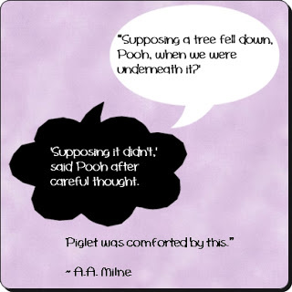 And then a favorite quote from The Tao of Pooh ran through my head, and I set out on a search to find it to make sure I got it right (because clicking around on the Internet is infinitely easier than searching through all of my bookshelves to find my copy of that tiny book.)