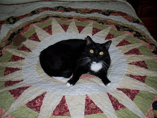 I love my cat. He's a black and white with tuxedo markings. Quite the handsome boy if I must say so myself, with personality plus. He's also not allowed to sleep in the bedroom when I'm sleeping in the bedroom. The RETIRED spousal unit knows this. I don't care if the cat sleeps on the bed all day long because I'm not in bed with him. The cat is NOT a polite bed partner. He pounces on anything that moves.