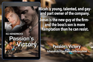 Passion's Victory is the second story I wrote as KC Kendricks. It garnered a CAPA nomination, which both surprised and pleased me. It shouldn't have. Passion's Victory is a solid story if I do say so myself.