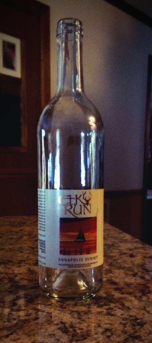 For the record, I am not a lush. I just enjoy a glass of wine from time-to-time. Recently I posted about our road trip to some Maryland wineries and the purchases we made. This is a follow-up to that blog. Yes, we guzzled enjoyed the whole bottle. It was only two big glasses each.