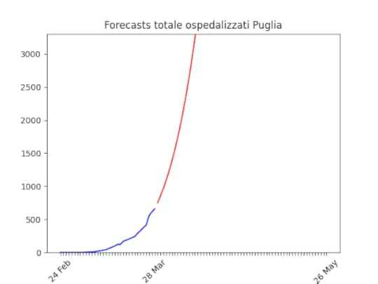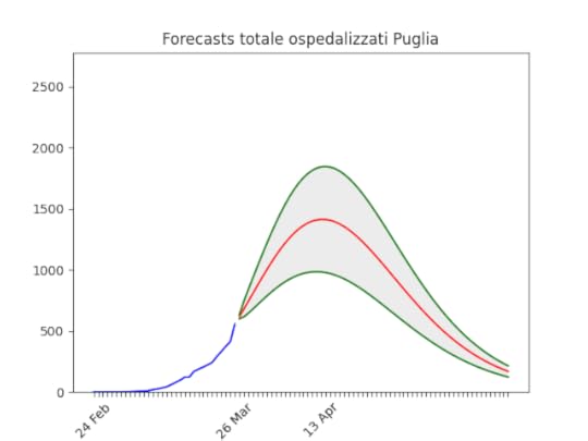 Nel post originale spiego perché misuro gli ospedalizzati. Come dice l’Economist questa settimana: “An arguably more reliable figure — the number of infected in hospitals — keeps rising, though the daily percentage increase has fallen.” Tutte le previsioni confermano che il rate sta diminuendo (ultimamente non tanto in Puglia…).