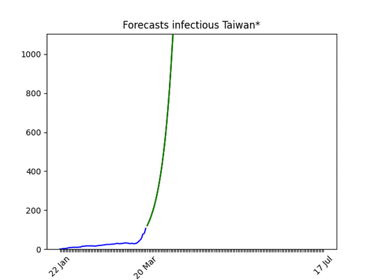 I am now downloading data from the COVID-19 (2019-nCoV) Data Repository by Johns Hopkins CSSE, and they only report infected, deaths, recovered. I try to predict infectious here, i.e. infected — (deaths+recovered).