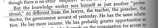 Writing about “The knowledge worker” in The Age of Discontinuity (1968) Peter Drucker offers this insight: the knowledge worker sees themselves as a skilled professional, or “white collar” to use an old term. To this end programmers, marketeers and conference producers see themselves as akin to doctors and lawyers.