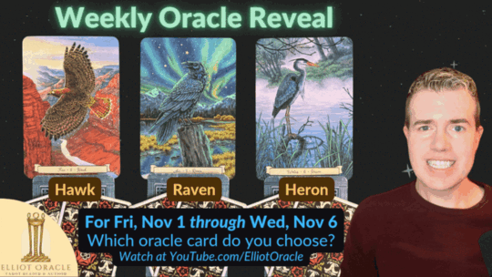 🔮 The Oracle Reveal is here! 🎉🦅 Soaring high above the earth, the Hawk encourages us to broaden our perspectives and trust the whispers of our intuition, guiding us towards our highest potential. 🐦⬛ The Raven, a creature of mystery and magic, invites us to delve into the depths of our inner wisdom and embrace the transformative power of shadow work. 🪶 The Heron stands poised and serene, reminding us that patience is a virtue and that by remaining present and observant, we can seize the perfect moment to manifest our desires.The Weekly Oracle Reveal is up now on YouTube at YouTube.com/elliotoracle! 💌Timestamps:0:00 - Intro