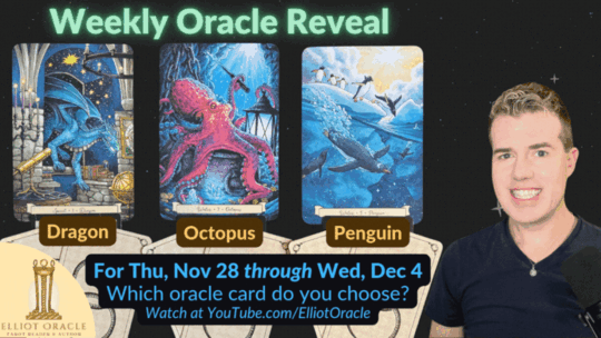 🔮 The Oracle Reveal is here! 🎉🐉 The Dragon embodies courage and strength, serving as a reminder to embrace our inner fire and face our fears head-on. 🐙 The Octopus encourages us to trust our intuition and go with the flow, even when life throws us curveballs. 🐧 The Penguin, a symbol of loyalty and community, reminds us that we are stronger together and that true strength comes from supporting one another.The Weekly Oracle Reveal is up now on YouTube at YouTube.com/elliotoracle! 💌Timestamps:0:00 - Intro