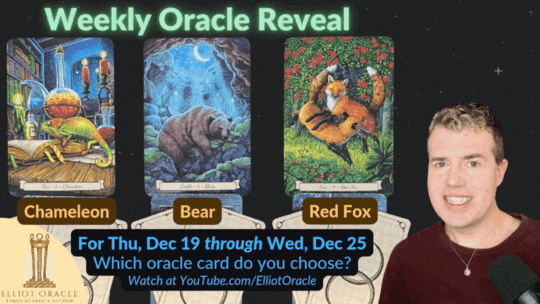 🔮 The Oracle Reveal is here! 🎉🦎 The Chameleon reminds us of the power of flexibility and going with the flow. 🐻 The Bear represents strength and grounding, showing us the importance of inner power and connecting with nature. 🦊 The Red Fox is all about cleverness and strategy, asking us to think outside the box & use our wit to navigate the challenges before us. The Weekly Oracle Reveal is up now on YouTube at YouTube.com/elliotoracle! 💌Timestamps:0:00 - Intro