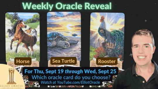 🔮 The Oracle Reveal is here! 🎉🐎 The Horse invites us to embrace freedom and adventure, encouraging us to seek new experiences and enjoy our independence. 🐢 The Sea Turtle, with its wisdom and longevity, reminds us to take life at our own pace and appreciate the journey. 🐓 The Rooster stands tall with confidence and vigilance, inspiring us to be aware of our surroundings and face challenges head-on.The Weekly Oracle Reveal is up now on YouTube at YouTube.com/elliotoracle! 💌Timestamps:0:00 - Intro