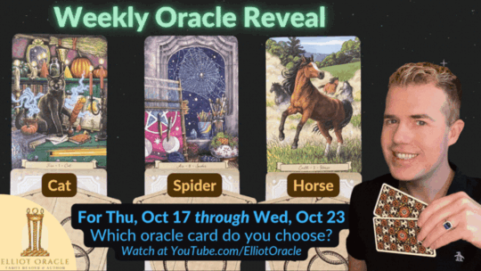 🔮 The Oracle Reveal is here! 🎉🐱 Cats embody independence. They remind us to trust our instincts and walk our own path with confidence. 🕷️ Ever resourceful, the Spider teaches us to weave our desires into existence, patiently crafting the life we envision. 🐴 The Horse, a symbol of courage, inspires us to leap over obstacles and charge fearlessly towards our dreams.The Weekly Oracle Reveal is up now on YouTube at YouTube.com/elliotoracle! 💌Timestamps:0:00 - Intro