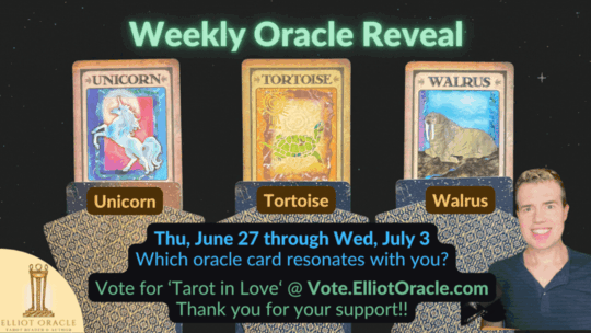 🔮 The Oracle Reveal is here! 🎉🦄 The Unicorn has a magical nature; it’s here to help you with trusting your intuition and tapping into the power of imagination. 🐢 The Tortoise has a steady pace, encouraging perseverance and patience in navigating life's challenges. 🦭 And the Walrus' majesty and strength asks you to focus your energy on standing tall and asserting yourself in the face of adversity. 🕰️ Time's running out! 🎉Only a few days remain to cast your votes for the TABI CARTA Awards 2024 at vote.elliotoracle.com Your vote for ‘ Tarot in Love ’ (find it under category 7!), would mean everything to me. 💫 thank you again for being a part of this journey.The Weekly Oracle Reveal is up now on YouTube at YouTube.com/elliotoracle! 💌Timestamps:
