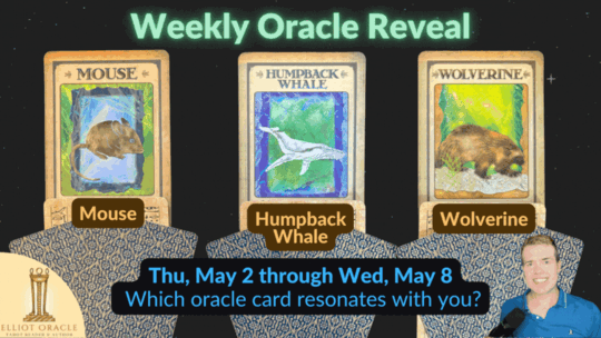 🔮 The Oracle Reveal is here! 🎉 Navigate life's nooks with the Mouse's resourceful cunning 🐭, dive into the emotional depths with the Humpback Whale's majestic presence 🐋, or tap into the raw power and resilience of the Wolverine's fierce spirit. 🐾The Weekly Oracle Reveal is up now on YouTube at YouTube.com/elliotoracle. Don’t miss out!