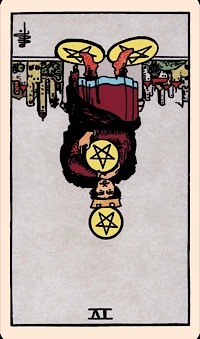 The Four of Pentacles (reversed) often accompanies the feeling of hollowness that comes from seeking fulfillment in external distractions and symbols to validate status. Although these luxuries can make you feel good temporarily, they never last. The man on the card is suffering because he is not connecting with the loving place within himself. He has mistakenly bought into the idea that if he is just successful enough, acquires enough, hangs on to enough, that he will eventually feel secure in himself. By clutching to the coins he is preventing the healing that will happen if he just feels his feelings. This card often accompanies avoidance behaviors that can keep you from connecting with yourself like shopping, eating, drinking, binge-watching television etc.