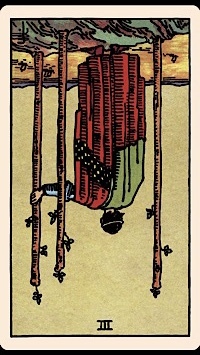 When the Three of Wands appears reversed, it asks where most of your mental energy is being directed... on a future that has not happened yet, or the present? Planning for the future is vital for achieving long term success in this life. However, thoughts about the future should not completely override experiencing joy in the moment. The Three of Wands reversed asks you to look at this moment as a snapshot of where you are on your path. If a photographer were to take a metaphorical picture of your life right now what would that picture look like? Can you see it as an image of beauty? It is time to be present with your life and see it as it truly is before proceeding. What do you love about your life currently? What do you wish would change? Accept your life and the lessons you currently find yourself learning. Breathe in the truth of your life at this moment and bless it with loving acceptance from your heart center.