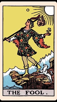Release your inner-fool, for your heart's desire awaits! Abandon the self-consciousness that prevents you from appearing too enthusiastic in public. Release thoughts of "I really should do this." or "What will so-and-so think?" from your consciousness. Learn to laugh at yourself and the world. Remember that after all the work and worry of "crafting an image" for others, you were still a primate. Let go of fears that stem from the ego and over-concern you with how you appear to others. Find the sunny, warm, funny, innocent and optimistic spark that waits deep within you, and set it free! You will be much more fun to be around. When the Fool appears, approach your situation with optimism and humor.