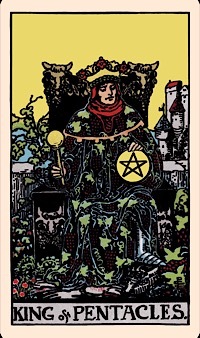 The King of Pentacles is among the favorite children of his mother the Empress. He alone has been entrusted with her golden scepter which makes things grow. The reason the Empress trusts the King of Pentacles is because he has proven himself to be patient, prepared, and approaches his tasks with loving-willingness.