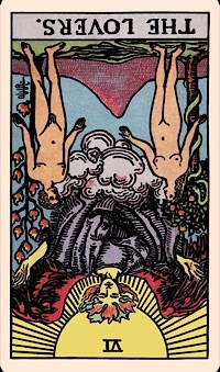 When the Lovers appears reversed it is time to restore harmony between in your relationships (personal, professional and familial). This card represents healing relationships. It also reveals that the things that are driving you crazy about someone else is highlighting an imbalance or disconnected part within yourself. Notice the three figures on the Lovers card. They are all aspects of you. They all need to communicate with one another. If they are not in harmony imbalance occurs and it most immediately show up in your relationships with others.