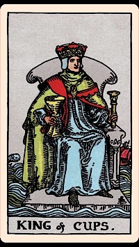 Everybody likes the King of Cups. He is kind, affable, and forgiving. He has nothing left to prove to the world, which makes him unpretentious. This is because he is completely at peace with his own feelings. The King of Cups has experienced both stormy seas, and still waters that run deep. Water and cups represent feelings in the tarot, and the King of Cups is perfectly at home in the realm of his emotions. He tells us, "You are always going to have feelings, why not channel their power into something constructive?"