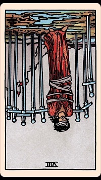 The imagery on the card may seem bleak and hopeless, but there is always a way out. Look for the abandoned swords that surround the woman in the card and use them to cut yourself free. Don't give up without a fight. Stand up to your fears and take control of your situation. You are a survivor and you are worthy of a happy and fulfilling life.