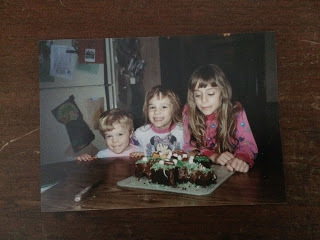 Kyle, Emma, and Jessica, smiling over a home made Christmas tree cake. Photo taken by Elena Lewis. I took a picture of a picture to add to this story.I believed in Santa until I was 13. Too long, I know.