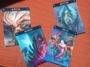 Jupiter, Scorpio, Neptune, and Pisces cards from Barbara Moore's Barbieri Zodiac Cards.