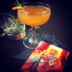 "The Leo" Cocktail, featuring the Leo card from Barbara Moore's Barbieri Zodiac Oracle.