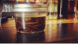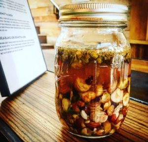 1 1/2 ounces chamomile & hazelnut home-infused bourbon (or you can choose other herbs!)
