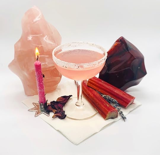 Rhubarb Romantic A zesty rhubarb lemon drop to reignite the romance in your life. Make as is, or swap the rhubarb with something like strawberry for whatever is more convenient for you! Plus learn one way to take the magic of a cocktail to transform it into a full spell with an aligned sugar rim & love spell candle.