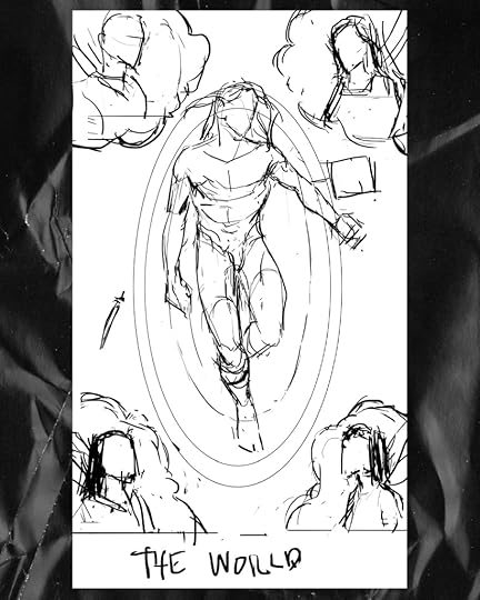 Here is a #sneakpeek of the initial #sketch my artist sent me of the line work for #TheWorld card for the first installment of #wherethereisnonight in#magdalenatarotnagazine. I have the finished line work now and it is EXACTLY what I wanted and I’m a little intimidated now that I am officially the colorist of the project.