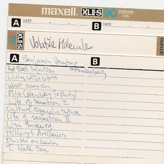 And while friends in the Noise Petals were working a similar groove to R.E.M. and other jangly college radio bands of the era, this one from Volatile Molecules is... ok, a little rougher around the edges. Ben X (I haven't spoken to him since graduation and not sure his musical past has followed him into adulthood, so we'll leave it at that) was a year behind me in ...