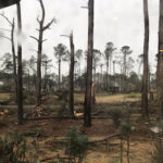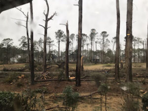 The primary destructions occurred at Ocean Ridge Plantation where I live. Towering pine trees no longer sway in my backyard or in my neighbors’ backyards. Instead the yard is filled with shattered glass. Shrubs are uprooted. Flower pots are overturned and broken. Most of the deck railing is gone. I found parts of it across the street and two houses down from where we live.