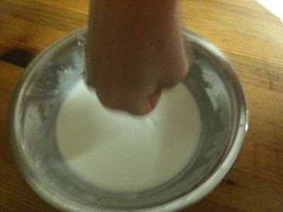 That man has made himself a big bowl of Ooblek--which, for those of you who missed that day in science class or summer camp--or, skipped that particular Dr. Seuss book where it found its fame, you can learn more about it and get the recipe to make your own bowl of Ooblek HERE.