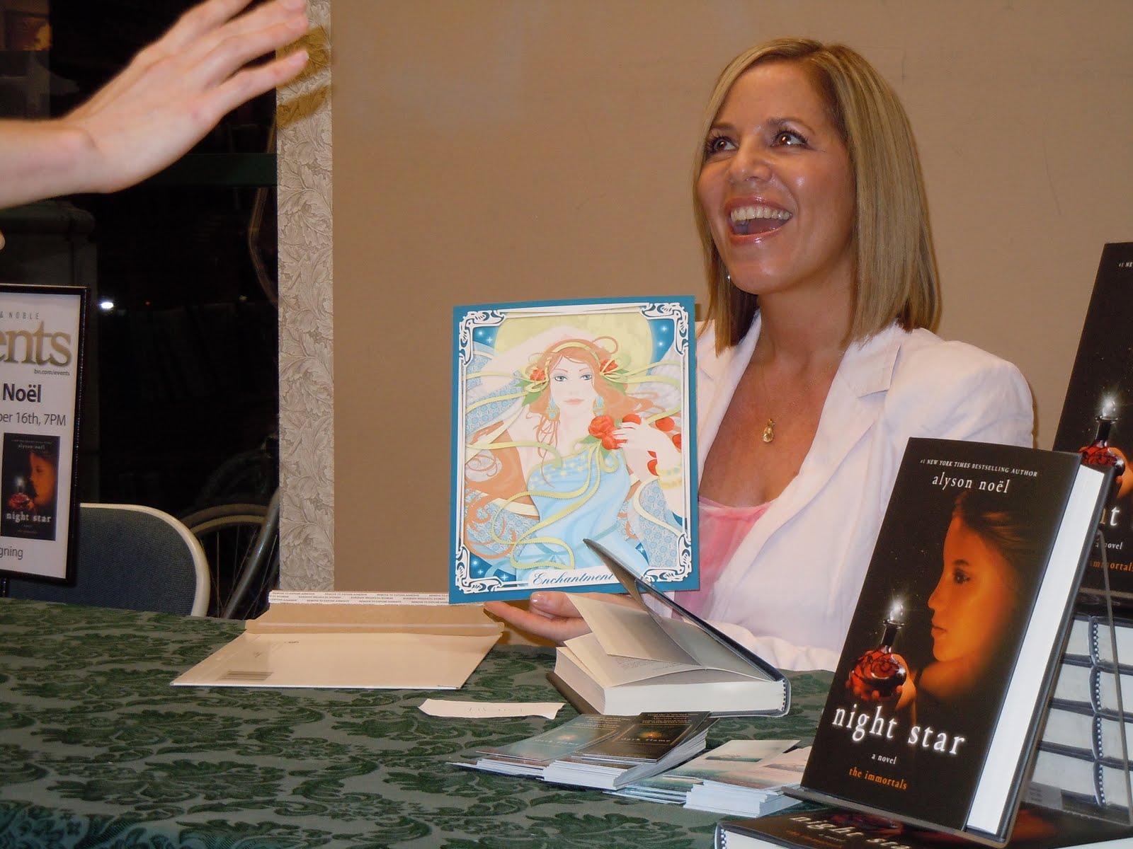 Lots to catch up on--but first, I'd live to give a big, huge, sparkly THANKS to all of you who showed such enthusiasm and support for NIGHT STAR's release day! Whether you posted to my blog, twittered, facebooked, myspaced, or made it out to the signing--I just want you to know how much I appreciate all of you!! Thanks for making my release day so special!!
