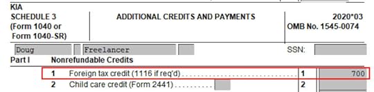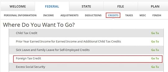 Foreign Tax Credit comes up much later in the Credits section under Foreign Tax Credit.