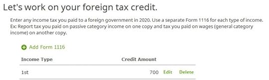 How to Enter Foreign Tax Credit Form 1116 in TurboTaxUse H&R Block DownloadThe following screenshots came from H&R Block downloaded software. The downloaded software is both less expensive and more powerful than H&R Block’s online software.