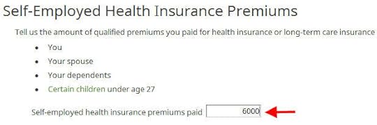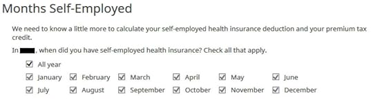 Which months you were self-employed determines how much counts as deductible self-employed health insurance. We were self-employed in all 12 months in our example.