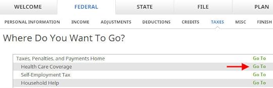 Go to Federal -> Taxes -> Health Care Coverage.