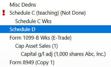To see your self-employed health insurance deduction, click on Forms on the top right. Find Schedule 1 in the left navigation pane. Look at Line 17. It shows we’re getting a $1,388 tax deduction for self-employed health insurance.
