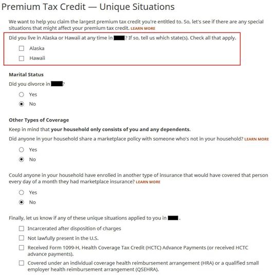 We don’t have any of these unique situations here. Check the box for Alaska or Hawaii if you lived there.